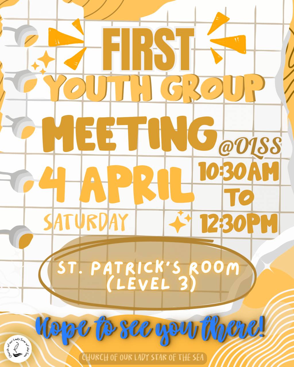 The OLSS Youth Group will be having their first meeting this Saturday from 10.30am to 12.30pm at St Patrick's Room (Level 3)!!